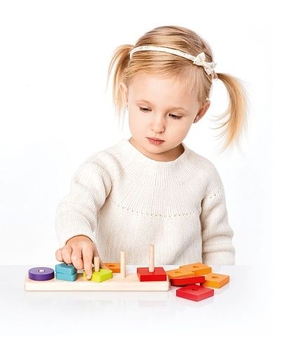 CUBIKA je nová značka dřevěných hraček vyrobených pouze z ekologicky pěstovaného dřeva s velmi precizním opracováním a líbivým designem. Třídíme tvary VI je dřevěná skládačka s 15 barevnými perforovanými geometrickými tvary, které se umísťují na čtvercovou základnu. Jednotlivé tvary mají i své opakující se barvy, které se děti touto hrou také učí rozlišovat. Sortiment hraček značky CUBIKA pomáhá dětem rozvíjet především senzomotorické schopnosti a dovednosti, logické myšlení, kreativitu, představivost a různé poznávací znalosti. Hračky jsou vyrobeny z nejkvalitnějšího javoru a buku a k barvení se používají též vysoce kvalitní barvy na vodní bázi, které jsou naprosto bezpečné pro děti a nemají žádný zápach. Všechny výrobky této značky mají německý certifikát TÜV a jsou vyrobeny dle evropské normy pro bezpečnost hraček EN 71. Nevhodné pro děti do 18 měsíců. Vyrobeno v Evropě.
