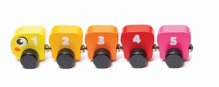 CUBIKA 15399 Barevná housenka s čísly - dřevěná hračka s magnety 10 dílů