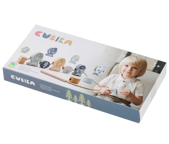 CUBIKA je nová značka dřevěných hraček vyrobených pouze z ekologicky pěstovaného dřeva s velmi precizním opracováním a líbivým designem a tento výrobek patří do nové kolekce vyrobené v pastelových barvách. Navlékací ryby a mořští živočichové jsou ideální hrou pro procvičení jemné motoriky, trpělivosti a paměti. Sada nabízí 12 dřevěných navlékacích prvků s mořskou tematikou, jednu 45 cm dlouhou tkaničku s dřevěným kolíčkem na prostrkování na jedné straně a zarážkou na druhé straně a 8 předloh s různě seřazenými tematickými prvky, podle kterých děti jednotlivé dílky navlékají. Zdatnější hráči si pak mohou předlohu jen prohlédnout a zkusit navlékat zpaměti. Sortiment hraček značky CUBIKA pomáhá dětem rozvíjet především senzomotorické schopnosti a dovednosti, logické myšlení, kreativitu, představivost a různé poznávací znalosti. Hračky jsou vyrobeny z nejkvalitnějšího javoru a buku a k barvení se používají též vysoce kvalitní barvy na vodní bázi, které jsou naprosto bezpečné pro děti a nemají žádný zápach. Všechny výrobky této značky mají německý certifikát TÜV a jsou vyrobeny dle evropské normy pro bezpečnost hraček EN 71. Nevhodné pro děti do 3 let. Vyrobeno v Evropě.