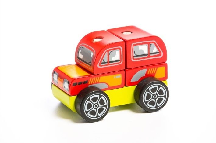 Terénní vůz je dřevěná skládačka s 5 díly, které se na sebe musí poskládat tak, aby se auto mohlo vydat do pořádného terénu. Tato skládačka je jednoduchou stavebnicí pro nejmenší děti.