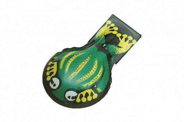Plechová cvakačka, kterou znají rodiče ze svých dětských let, při stlačení vydává výrazný zvuk. Není hračkou, obsahuje ostré hrany - jde o sběratelský předmět.