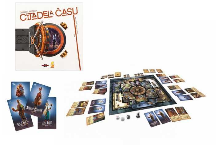 Hra Ďábelský profesor a Citadela času obsahuje: hrací desku, 5 karet postav, 42 karet, 6 figurek, 6 značek artefaktů, ukazatel hodin, 18 dveří, 18 žetonů artefaktů, 12 žetonů spínačů, 3 kostky a pravidla.