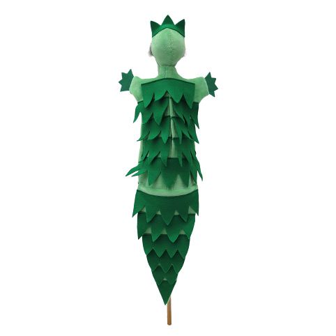 Kornoutový maňásek "3v1"=loutka+maňásek+schránka na drobnosti. Ovládá se dřevěnou tyčkou, kterou také schováte celou postavičku do kornoutu. Otvorem na zádech ovládáte ruce, tak jako u maňásků, nebo vložíte drobné dárky do kornoutu. Čistit jen povrchově.