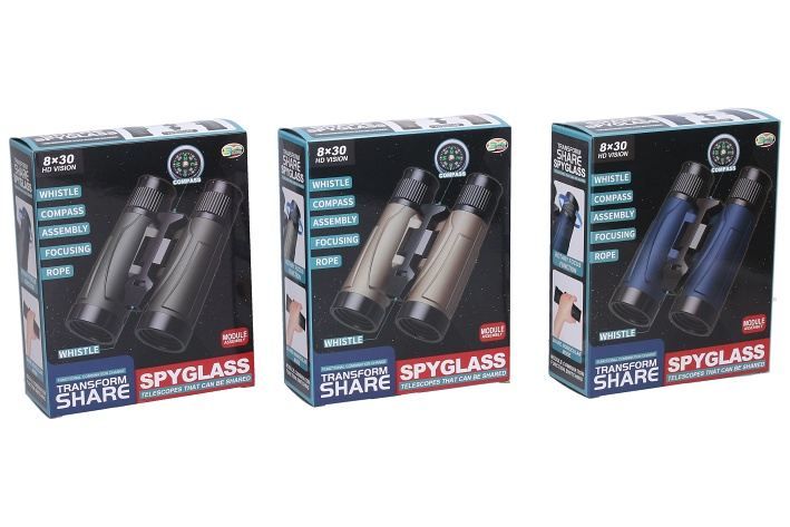Dalekohled. Velikost 15 cm. Display box 6 ks. 3 varianty - modrá, černá, hnědá