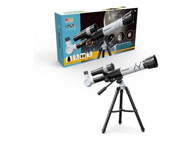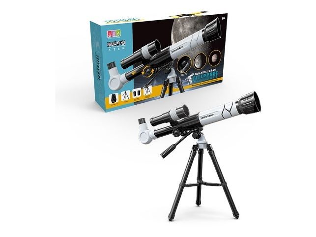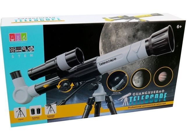 Dalekohled 45 x 25 x 9 cm. Pomocí dětského dalekohledu vzbudíte u dětí zájem o pozorování hvězd. Věrná napodobenina skutečného dalekohledu poskytne spoustu zábavy a určitě pomůže rozvinout zájem o astronomii nebo jen pozorování přírody a vzdálené krajiny. Balení dalekohledu obsahuje:Stativ. Točící knoflík – nastavení ohniskové vzdálenosti teleskopu. Zvětšení 20x / 30x / 40x. Klip na telefon. Rozměr: 45 x 25 x 9 cm. Materiál: plastDoporučený věk: 6 +