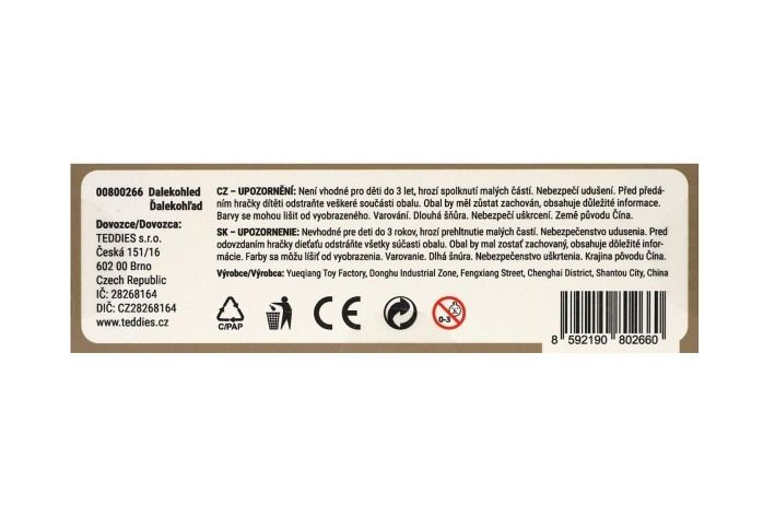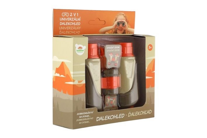 Lehký univerzální dalekohled 2v1. Dopřejte svým dětem kochat se obrazem živých ptáků nebo zvěře při lovu. Povzbudíte je tím k probádání venkovního světa. Dalekohled je možné rozpojit a máte tak 2v1, má otočný zoom a nastavitelnou šířku. Součástí balení je šňůrka.