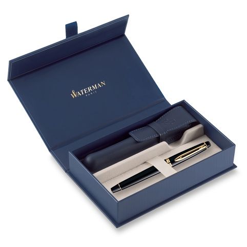 Dárková kazeta splnicím perem Waterman Expert Black GT s černě lakovaným mosazným tělem a víčkem. Vkombinaci s doplňky pokovenými 23karátovým zlatem. Hrot zušlechtilé nerezové oceli částečně pokovený 23karátovým zlatem.
