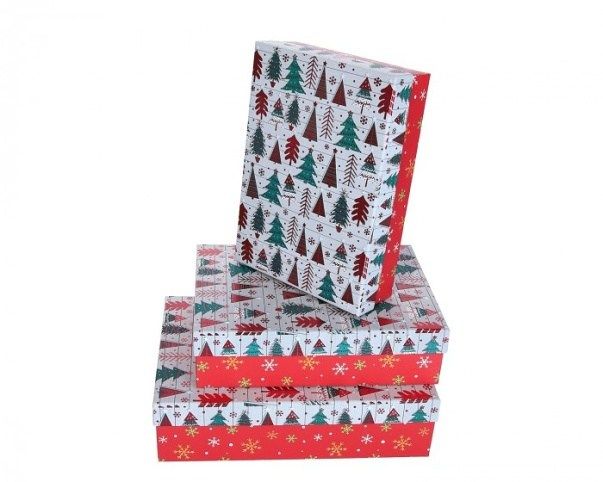 Dárková krabice bílá s vánočním motivem velká. Dodejte svým dárkům kouzelný vánoční vzhled! Pevná kartonová krabice v bílém provedení s motivem vánočních stromečků a sněhových vloček promění každé balení v radost. Krabice jsou nejen krásné, ale i praktické – ideální na dárky, cukroví, ozdoby nebo zimní dekorace.