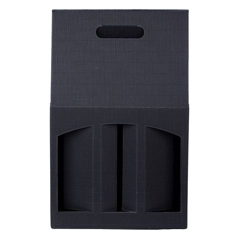 Černá papírová dárková krabice na 3 láhve s uchem.