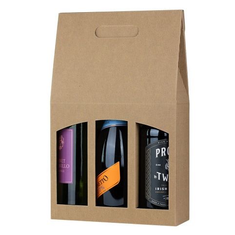 Přírodní papírová dárková krabice na 3 láhve s uchem.