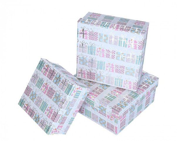 Dárková krabička pastelové s motivem dárků sada 3ks