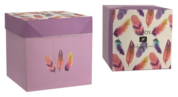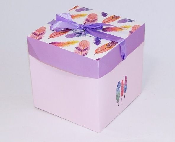 Dárková krabička skládací s mašlí M 16,5x16,5x16,5 cm peříčka