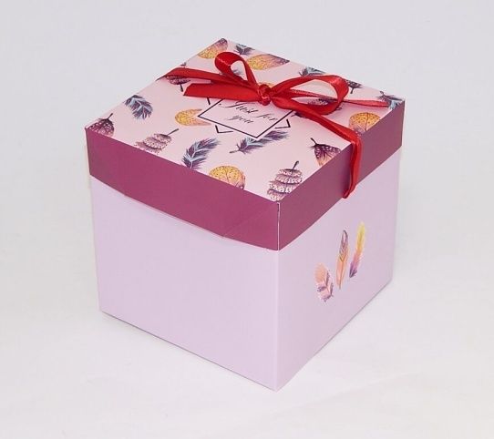 Dárková krabička skládací s mašlí M 16,5x16,5x16,5 cm peříčka