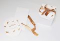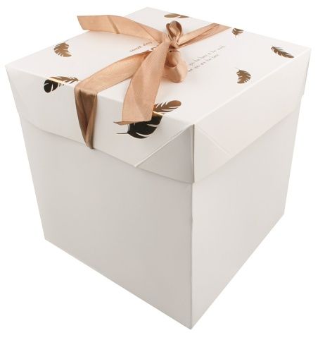 Dárková krabička skládací s mašlí XS 10,5x10,5x10,5 cm zlatá peříčka