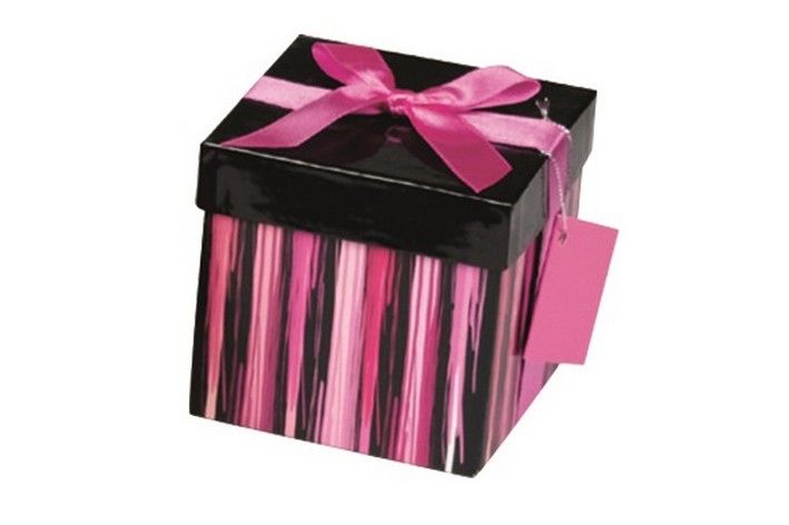 Dárková krabička skládací s mašlí XS 10x10x10 cm růřovo černá s pruhy