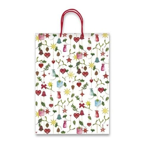 Dárková papírová taška Christmas Decorations v atraktivním vánočním motivu.