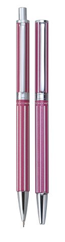Elegantní celokovová dárková sada kuličkového pera o šíři hrotu 0,8mm s otočným mechanismem a mechanické tužky 0,5mm. Součástí mechanické tužky je pryž a zasouvací hrot. Velkoobsahová náhradní náplň SILVER. Dodáváno v koženkovém pouzdře.