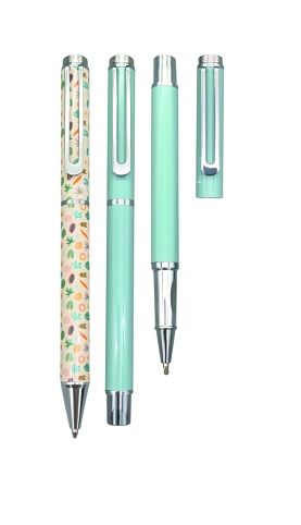 Celokovová dárková sada zahrnuje pestrobarevné kuličkové pero s otočným mechanismem a rollerem v nádherném odstínu světle modré. Dodáváno v dárkové krabičce, která dokonale doplňuje jejich design. Tato pera mají kovové klipy a šíři hrotu 1,0mm. Náhradní náplň Silver kov.