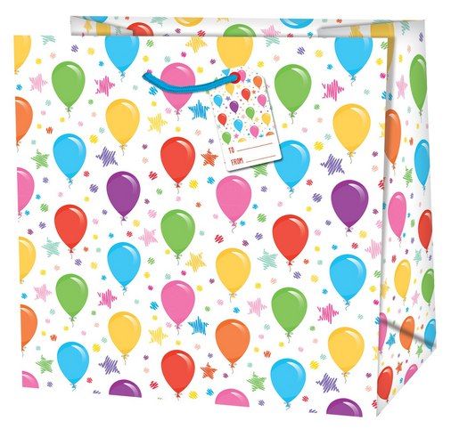 Dárková taška čtvercová o rozměrech 15x6x14,6 cm s motivem balónků