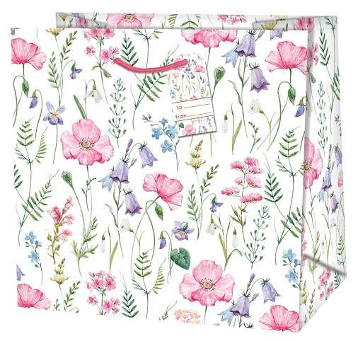 Dárková taška čtvercová o rozměrech 15x6x14,6 cm s motivem lučních květů