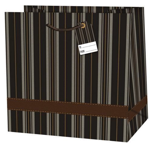 Dárková taška čtvercová o rozměrech 15x6x14,6 cm s motivem pruhů