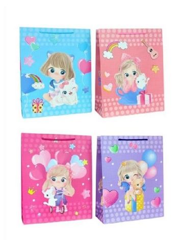 Dárková taška L 26×32×10 cm – Holčička a zvířátka