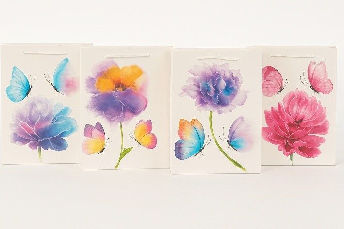 Dárková taška M 26x32x10cm-pastelové květy a motýli