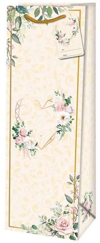 Dárková taška na láhev o rozměrech 12,6x8,9x36 cm s motivem květin