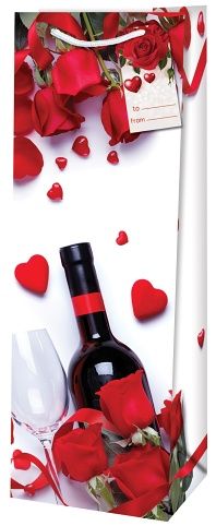 Dárková taška na láhev o rozměrech 12,6x8,9x36 cm s motivem růží