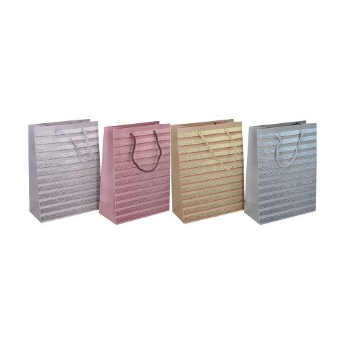 Dárková taška proužkovaná barevná (modrá/růžová/zlatá/stříbrná) Rozměr: • Š 18cm • V 24cm • H 8,5cm - Druhy/barvy: modrá,růžová,zlatá,stříbrná