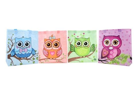 Dárková taška s motivem soviček. Rozměry cca 26,5 x 29 cm.
