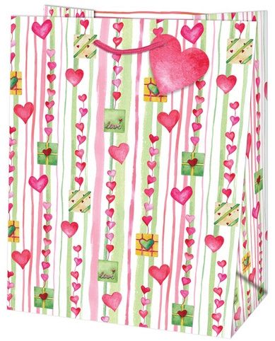 Dárková taška střední o rozměrech 19x10,2x23cm s motivem srdíček