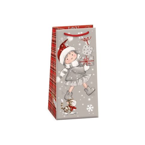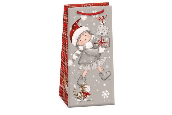 Matná vánoční papírová dárková taška s originálním designem. Vyrobená z kvalitního pevného papíru pro rychlé a praktické zabalení dárků všech velikostí. Kvalita zpracování zaručuje dostatečnou pevnost proti protržení dna nebo odtržení oušek.