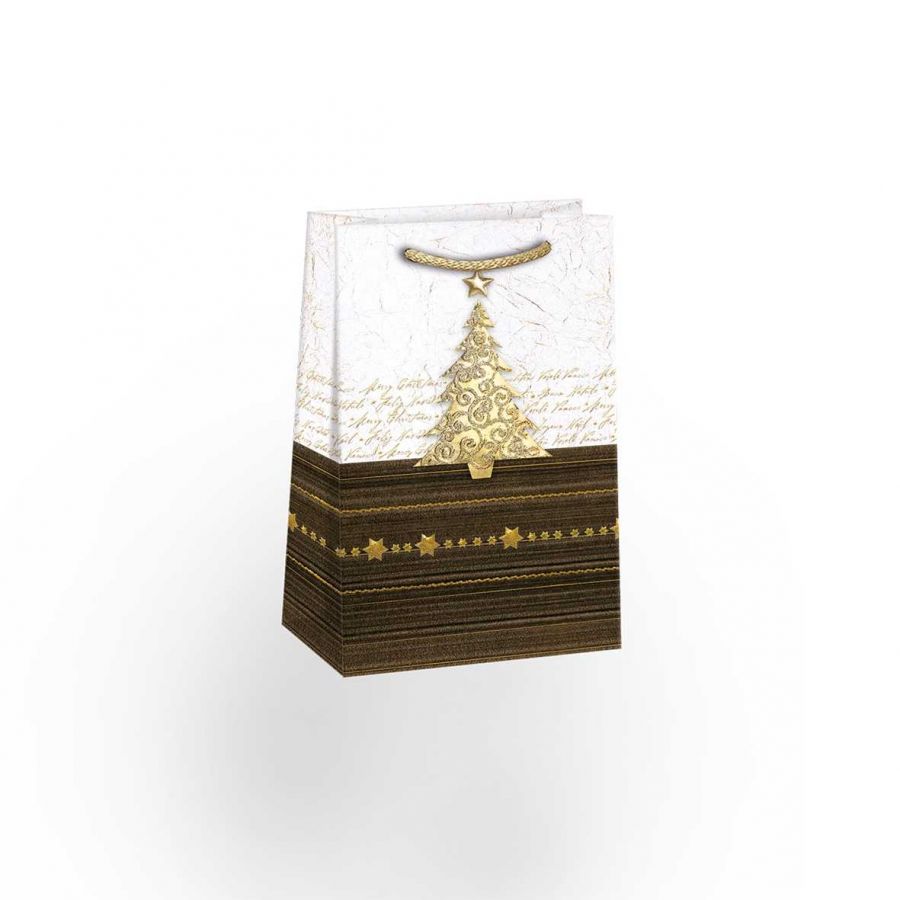 Matná vánoční papírová dárková taška s originálním designem. Vyrobená z kvalitního pevného přírodního papíru pro rychlé a praktické zabalení dárků všech velikostí. Kvalita zpracování zaručuje dostatečnou pevnost proti protržení dna nebo odtržení oušek.