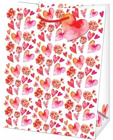 Dárková taška velká č. 22005 TL o rozměrech 26,7x33x13,7 cm s motivem srdíček