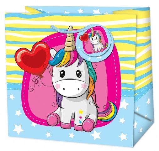 Dárková taška velká čtvercová- 22031 TL o rozměrech 267x137x330mm s motivem jednorožce