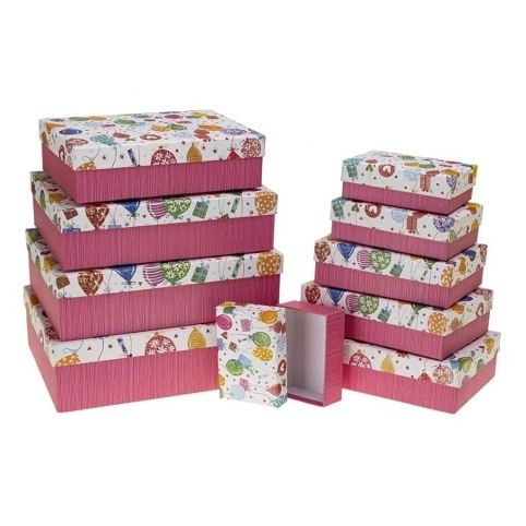 Rozměry: 14,5 x 10 x 5 cm; 17 x 12 x 5,5 cm; 9 x 13,5 x 6 cm; 22 x 16 x 6,5 cm; 24,5 x 17,5 x 7 cm; 27,5 x 19,5 x 7,5 cm; 29 x 21 x 8 cm; 33 x 23.5 x 9 cm; 35 x 25 x 10 cm; 37 x 27 x 13 cm