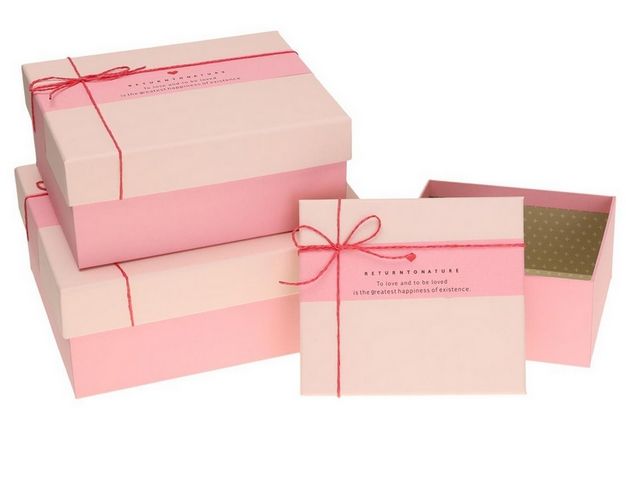 Dárkové krabice v sadě 3 ks – růžové s víkem a provázkem