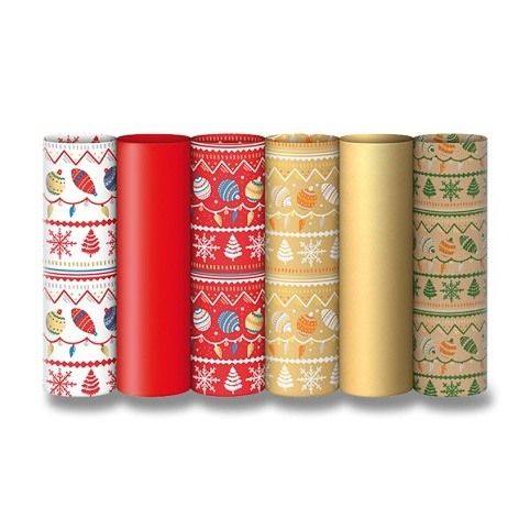 Dárkový balicí papír v atraktivních vánočních motivech a barvách. Baleno v rolích 2 x 0,7 m. Mix 6 motivů.