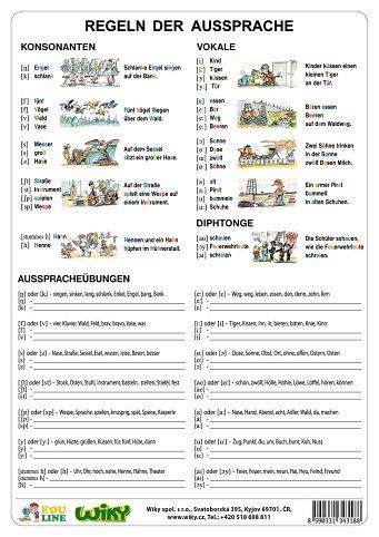 Jednoduchá a přehledná tabulka napomáhá k snadnějšímu osvojení německé abecedy a správné výslovnosti.