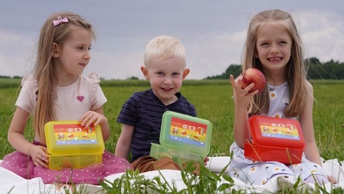 Plastová svačinová krabička s licencí České televize Déčko. Uvniitř krabičky je malá vyndavací přihrádka na ovoce nebo zeleninu. Krabička je vyrobena z odolného a neškodného materiálu. Výrobek z České republiky.