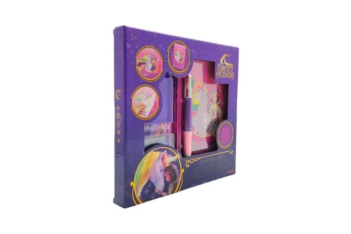 Stylová dekorační sada s diamantovým malováním Unicorn Academy Diary potěší všechny fanoušky seriálu Unicorn Academy. Sada obsahuje diaár, který si můžete sami nadekorovat pomocí diamantového malování, je ideální na zapisování poznámek, tajemství nebo denních zážitků. Každý deník je doplněn drobnými dekoračními prvky – samolepkami a ozdobami – díky nimž si lze zápisník upravit podle vlastní fantazie.