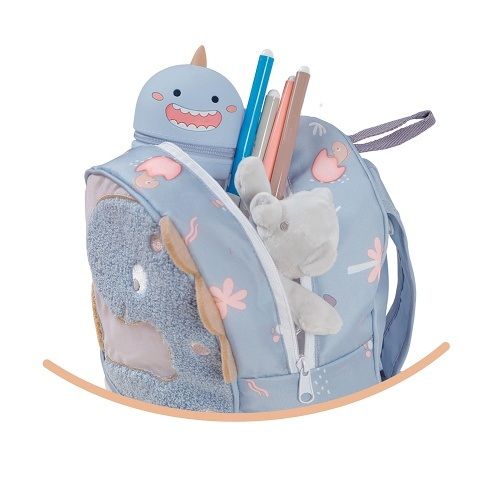 DeCuevas 10580 Dětský batůžek COCO 2024 patří do stejnojmenné kolekce, která je novinkou roku 2024 a nabízí nejen kočárky, ale i jiné doplňky nejen pro malé slečny a jejich panenky, ale také pro chlapce. V hravé kolekci COCO je dominantní obrázek dinosauří maminky se svým roztomilým mláďátkem, které nese na zadečku ještě vaječnou skořápku. Potisk malého dinosauříka na jemně holubičí šedomodré látce je základem celé kolekce, již zdobí prvky v pískové nebo narůžovělé barvě, která se promítá i do většiny nosných konstrukcí.
