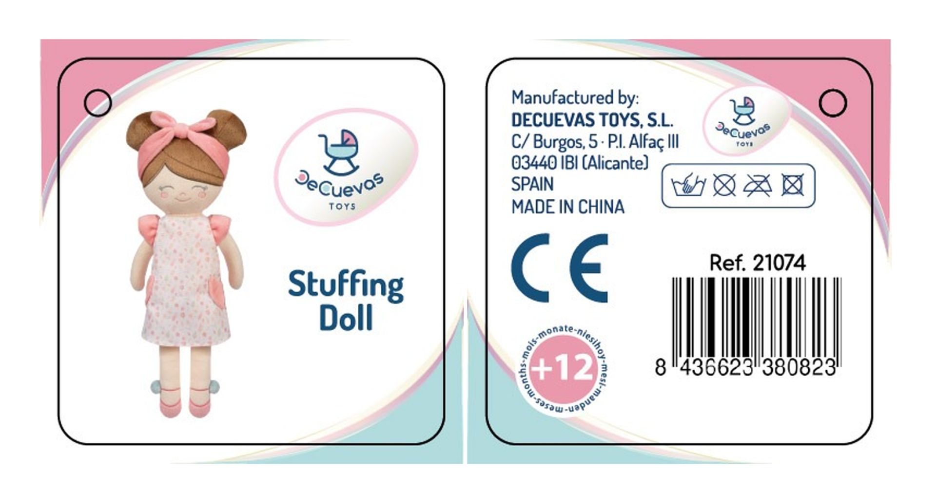 DeCuevas 21074 Plyšová panenka Tulipe 2025 - 36 cmPlyšová panenka Tulipe je malá slečna ze stejnojmenné kolekce, která je novinkou roku 2025. Tulipe je, jak již sám název napovídá, kolekce plná tulipánů v překrásně sladěných teplých pastelových lososových barvách. Světlejší a tmavší odstíny barev jsou vkusně doplněné drobným květinovým vzorem ve stejných tónech na bílosmetanovém podkladu. Tento motiv ještě navíc u kočárků umocňují svým tematickým tvarem i překrásné, jako tulipán vypadající tašky. Květ tulipánu zdobí i dřevěné výrobky této kolekce. Panenka je vyrobena z vysoce kvalitního hladkého lesklého plyše a je pratelná (ručně na 30 °C). Díky své velikosti a nízké váze je ideální společnicí každé malé holčičky nejenom na cestách, ale díky měkkému materiálu je příjemná i na mazlení do postýlky. Panenka je balena v igelitovém obalu. Velikost 36 cm. Doporučený věk 12m+.Doplňující informace:• Nádherný španělský design• Materiál: plyš, polyester, duté vlákno• Pratelná ručně na 30 °C• Rozměry samotné panenky: 15 x 8 x 36 cm (š x d x v)• Baleno v ochranném igelitovém obalu • Rozměry balení: 15 x 8 x 36 cm (š x d x v)• Váha balení: 0,12 kg• Doporučený věk od 12 měsíců