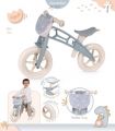 DeCuevas 30180 Dětské odrážedlo - Balance Bike COCO 2024, ze stejnojmenné kolekce, která je novinkou roku 2024, je pro děti ideálním dopravním prostředkem, na kterém se učí držení rovnováhy a trénují koordinaci celého těla. Děti se na něm naučí velmi rychle udržet stabilitu a pak bez problémů snadno a rychle přejdou na normální šlapací kolo. Velkou výhodou tohoto balance biku jsou bezúdržbová nenafukovací kola, výškově nastavitelné sedadlo, které s dítětem roste a lehká váha. V hravé kolekci COCO je dominantní obrázek dinosauří maminky se svým roztomilým mláďátkem, které nese na zadečku ještě vaječnou skořápku. Potisk malého dinosauříka na jemně holubičí šedomodré látce je základem celé kolekce, již zdobí prvky v pískové nebo narůžovělé barvě, která se promítá i do většiny nosných konstrukcí. Nádherný španělský design, precizní zpracování. Velmi snadná manipulace během samotné hry. Materiál: plast, EVA materiál. Baleno v krabici v barvách kolekce. Doporučený věk od 3 let.
