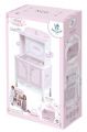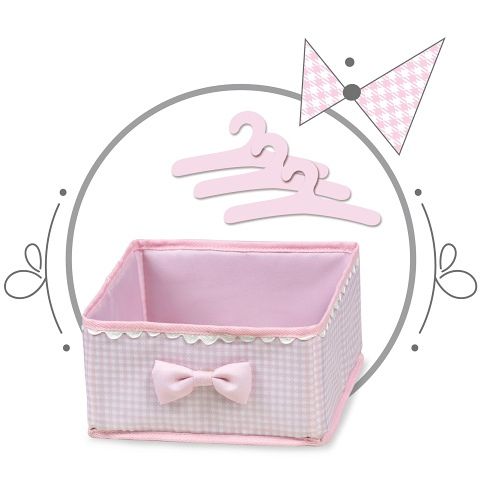 DeCuevas 54846 Dřevěná šatní skříň pro panenky s hracím centrem NIZA 2022 patří do stejnojmenné něžně růžové kolekce NIZA která je novinkou roku 2022 a nabízí krom různých druhů kočárků i nábytek pro panenky a malé parádnice. Kolekce je vytvořena z jednobarevného růžového materiálu v kombinaci s růžovobílou drobnější kostičkou, zdobená růžovými lemy a bílými a růžovými drobnými i většími volánky. Vše působní velmi lehce a čistě.