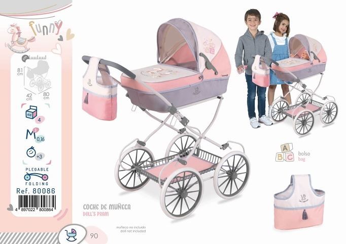 DeCuevas 80086 Skládací kočárek pro panenky s taškou FUNNY 2023 - 81 cm