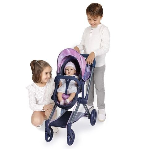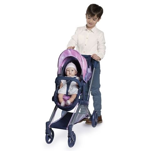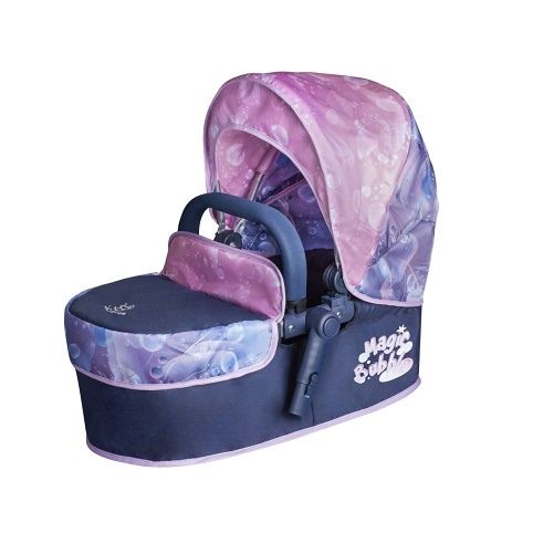 DeCuevas 81776 Skládací kočárek pro panenky 3 v 1 s taškou Magic Bubble 2024 - 73 cm patří do stejnojmenné kolekce, která je novinkou roku 2024 a nabízí několik různých druhů kočárků. Barevná kolekce Magic Bubble pracuje s něžným duhovým efektem. Od růžové plynule přechází ve světle fialovomodrou, aby v závěru končila královskou modří. Hravé bublinky provázejí celou kolekci. Kulatá závěsná taška na kočárek, jak tvarem, tak designem, podporuje název celé kolekce Magic Bubble. Aplikace tematického Magic Bubble loga výrazně vyniká a zdobí na tmavomodrém pozadí materiálu. Tato kolekce se zrodila ve spolupráci českých návrhářů a španělského výrobce DeCuevas Toys.