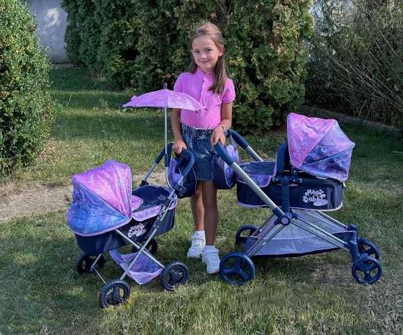 DeCuevas 81776 Skládací kočárek pro panenky 3 v 1 s taškou Magic Bubble 2024 – 73 cm, ze stejnojmenné kolekce, která je novinkou roku 2024, je díky vyšší rukojeti a kombinované funkci hlubokého a sportovního kočárku spíš vhodný pro slečny předškolního věku, které toto vše už více při hraní využijí. Obdiv si tento kočárek právem zaslouží za svůj design, který dokonale kopíruje dnešní moderní reálné dětské kočárky celosvětově známých značek jako je třeba Cybex Priam. Výhodou je i odnímatelná přenosná korbička, ve které lze bezpečně přenášet panenku. Po složení nezabírá mnoho místa a je praktický i pro převoz autem. Barevná kolekce Magic Bubble pracuje s něžným duhovým efektem. Od růžové plynule přechází ve světle fialovomodrou, aby v závěru končila královskou modří. Hravé bublinky provázejí celou kolekci. Kulatá závěsná taška na kočárek, jak tvarem, tak designem, podporuje název celé kolekce Magic Bubble. Aplikace tematického Magic Bubble loga výrazně vyniká a zdobí na tmavomodrém pozadí materiálu. Tato kolekce se zrodila ve spolupráci českých návrhářů a španělského výrobce DeCuevas Toys. Kolekce Magic Bubble nabízí několik různých druhů kočárků. Nádherný španělský design, precizní zpracování. Skládací model, velmi snadná manipulace během samotné hry. Materiál: kov, plast, textil. Baleno v krabici v barvách kolekce. Doporučený věk od 3 let.