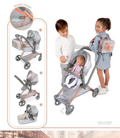 DeCuevas 81777 Skládací kočárek pro panenky 3 v 1 s batůžkem CITY X 2024 - 73 cm
